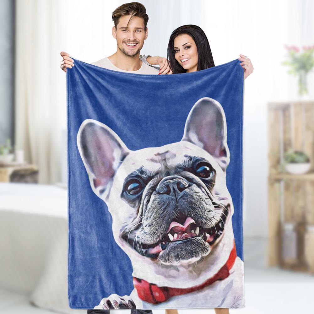 Custom Dog Blankets Personalized Pet Photo Blankets Painted Art Portrait Fleece Blanket
