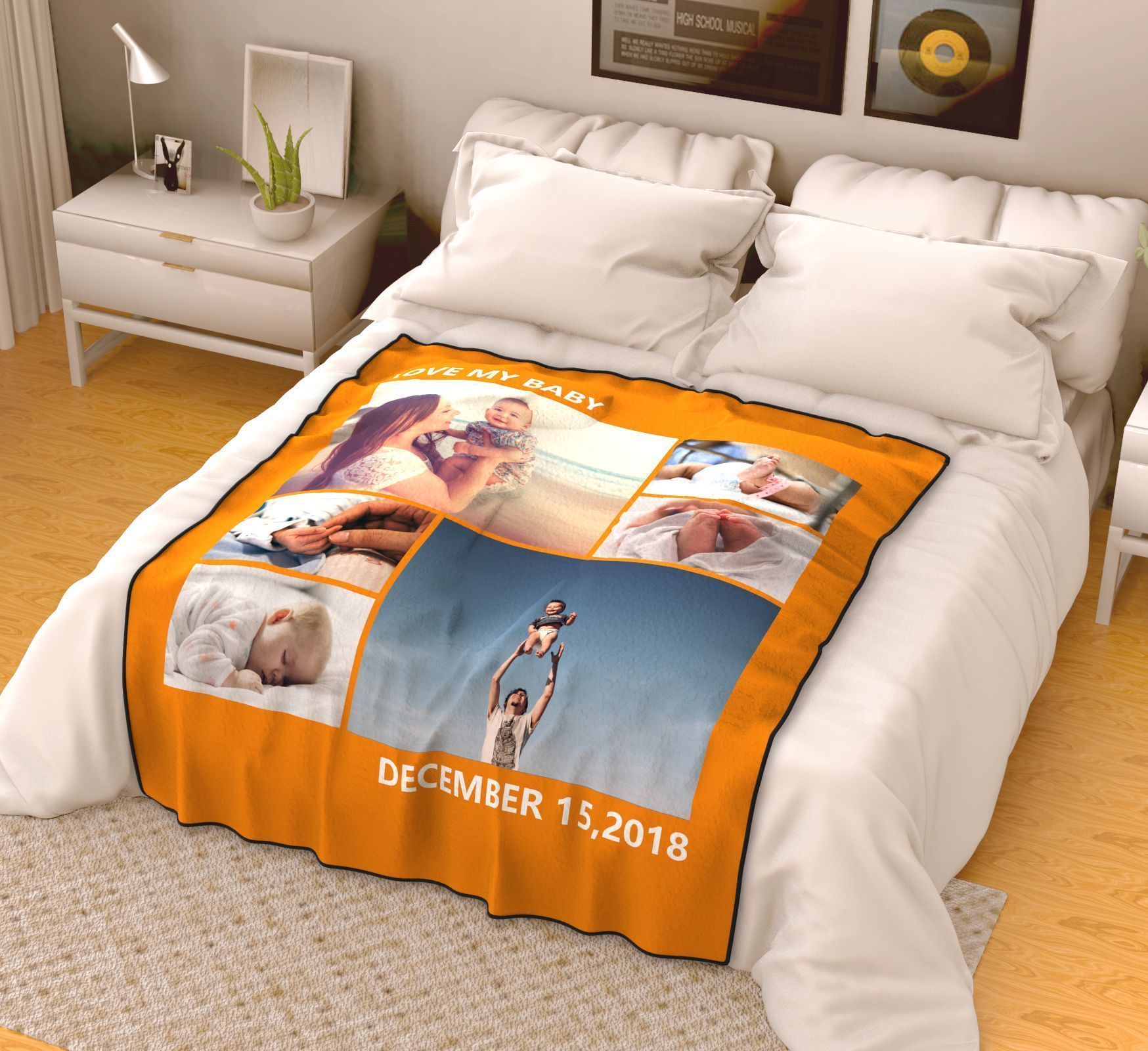 Personalized Family Photo Cover Whole Fleece Custom Blanket