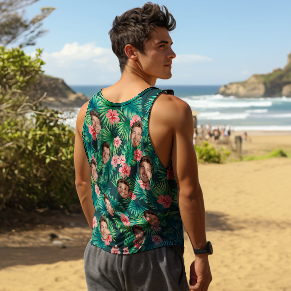 Custom Face Tank Tops Men's Sleeveless Shirt Large Leaves