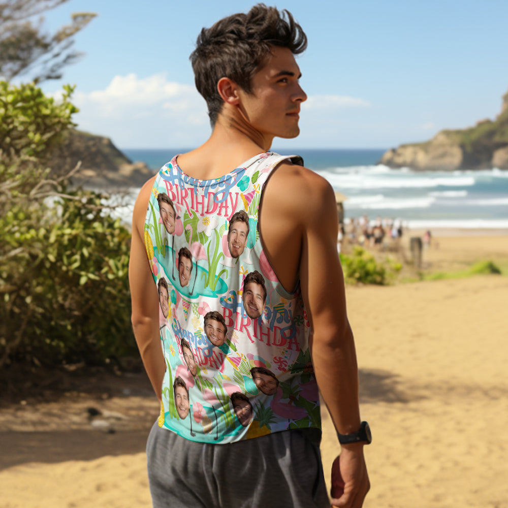 Custom Face Tank Tops Men's Sleeveless Shirt Happy Birthday