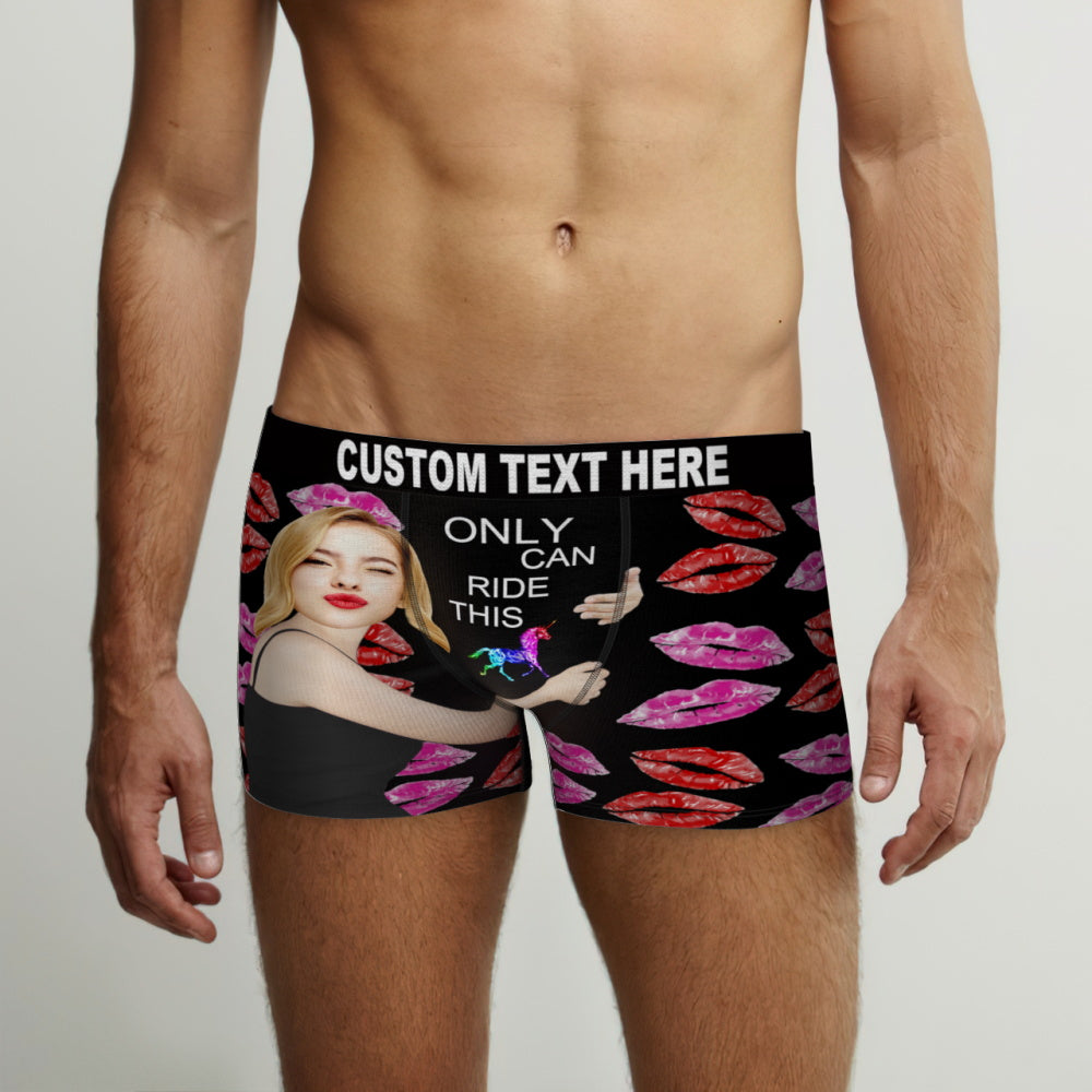 Custom Face Boxers Briefs Personalized Men's Underwear Red Lips Briefs With Photo - ONLY CAN RIDE THIS