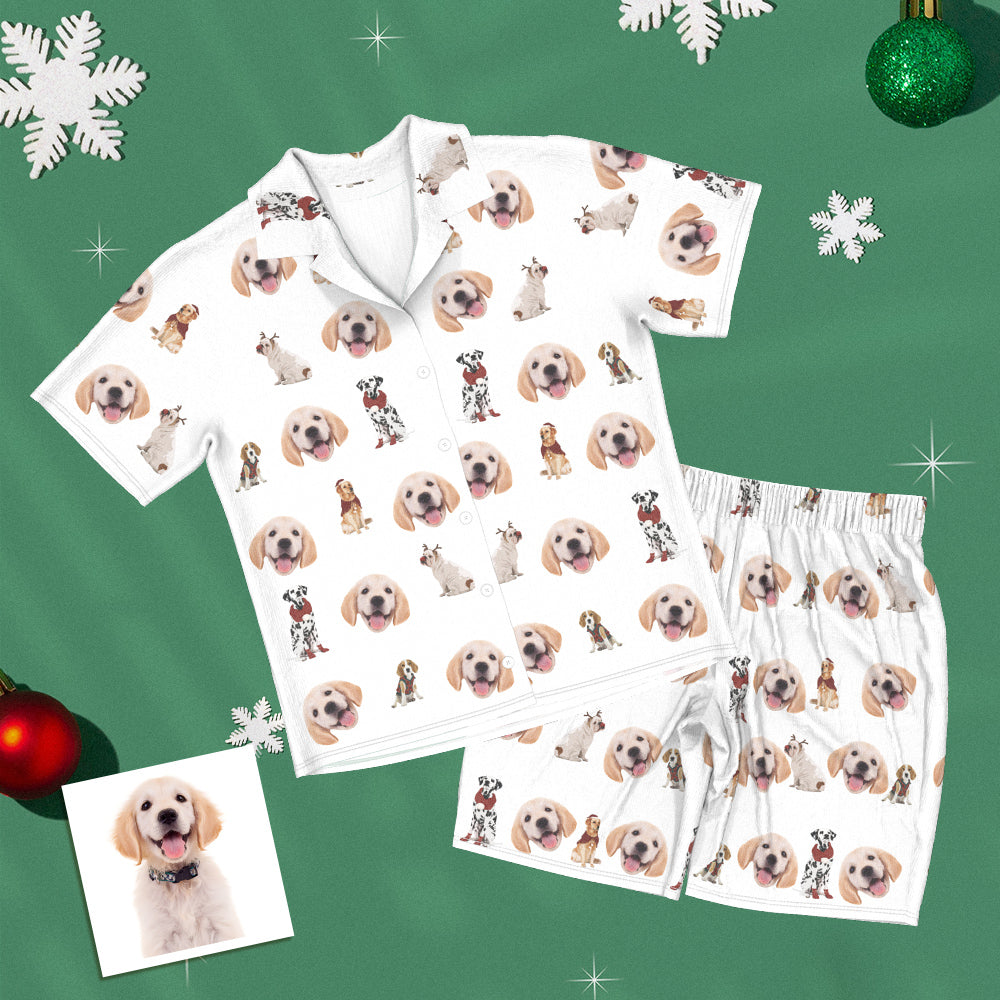 Custom Pet Face Short Sleeved Pajamas Personalised Photo Pajama Women Men Christmas Gifts For Family