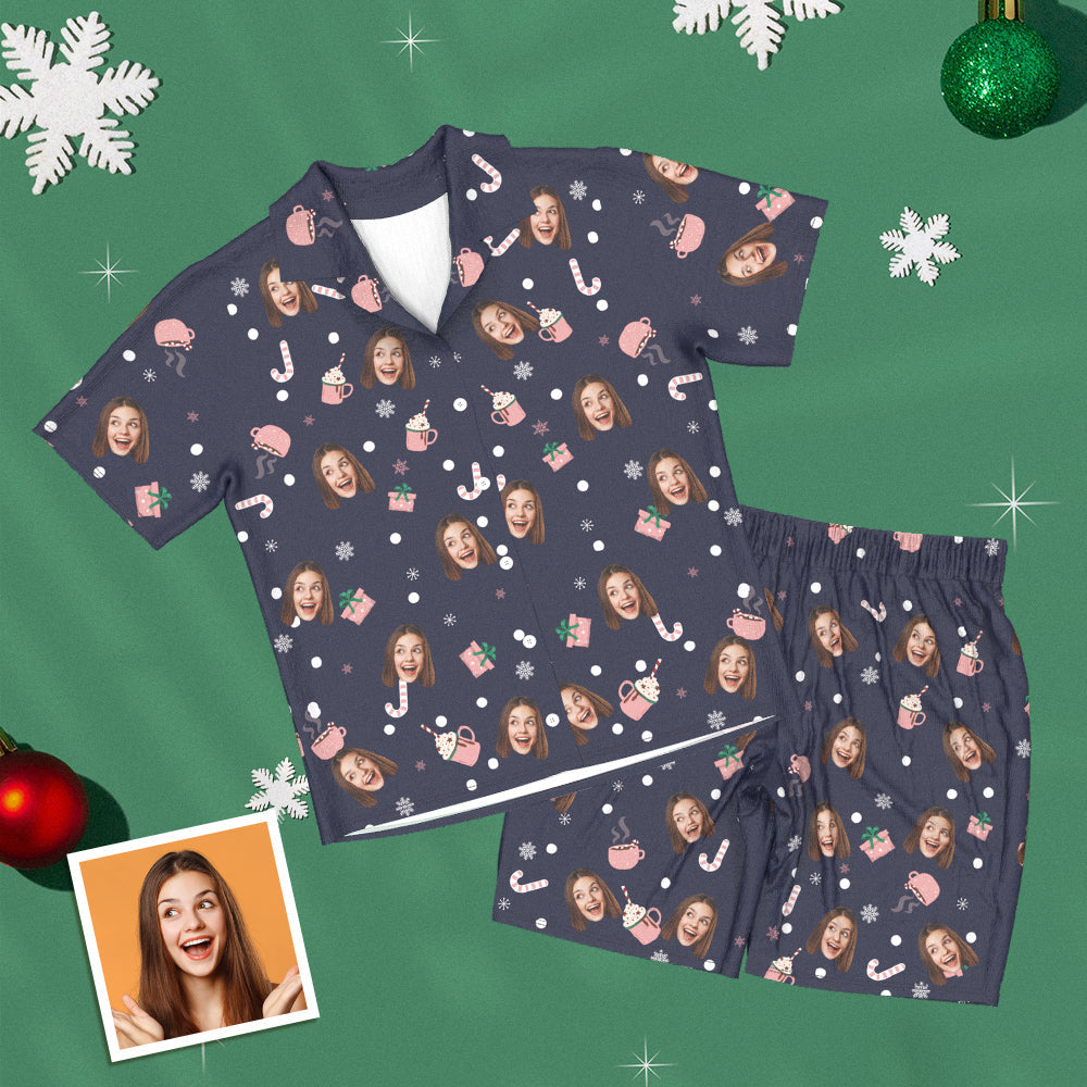 Custom Face Short Sleeved Pajamas Personalised Photo Women Men Sleepwear Christmas Gifts For Lover
