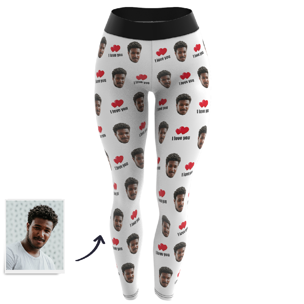 Custom Face Leggings I Love You Personalized Selfie Leggings