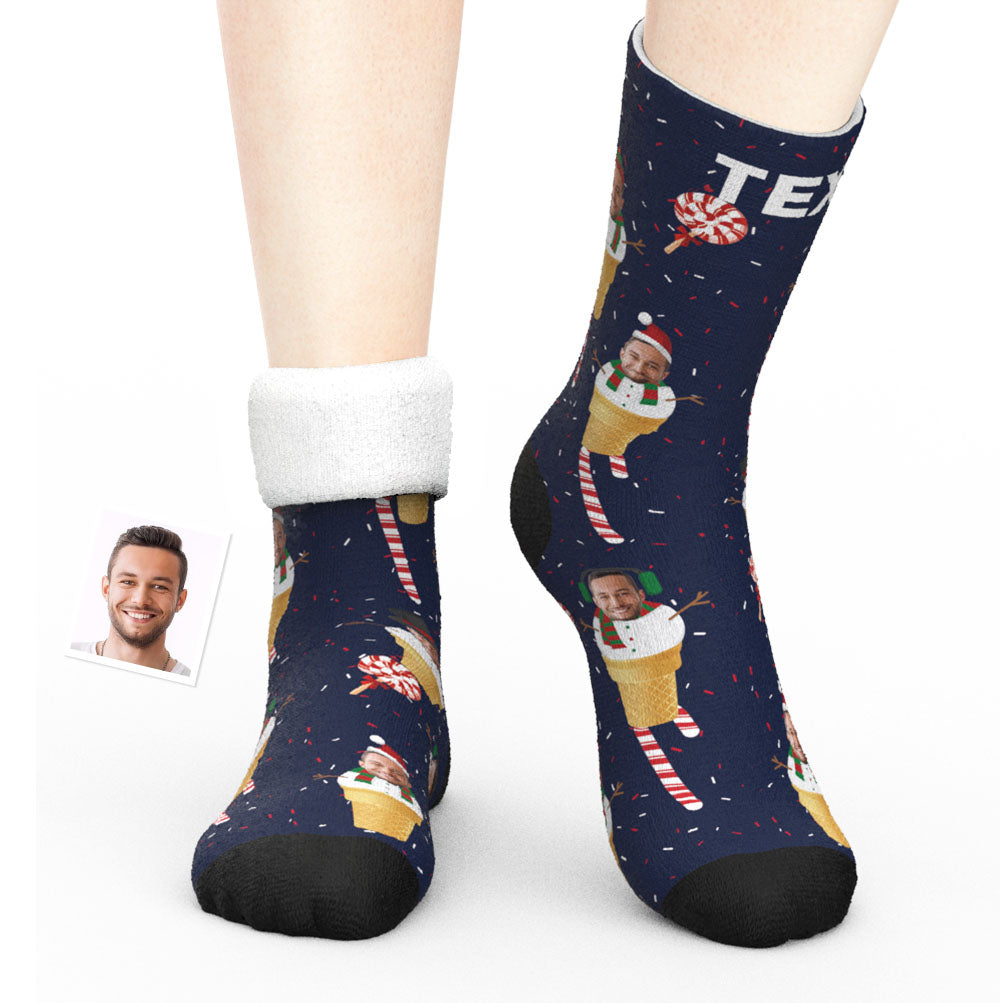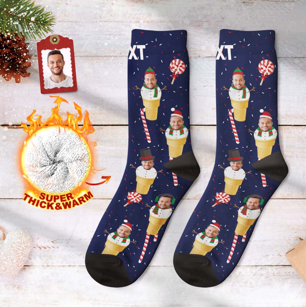 Custom Face Thick Socks 3D Digital Printed Socks Autumn Winter Warm Socks Christmas Gift - Snowman Cone