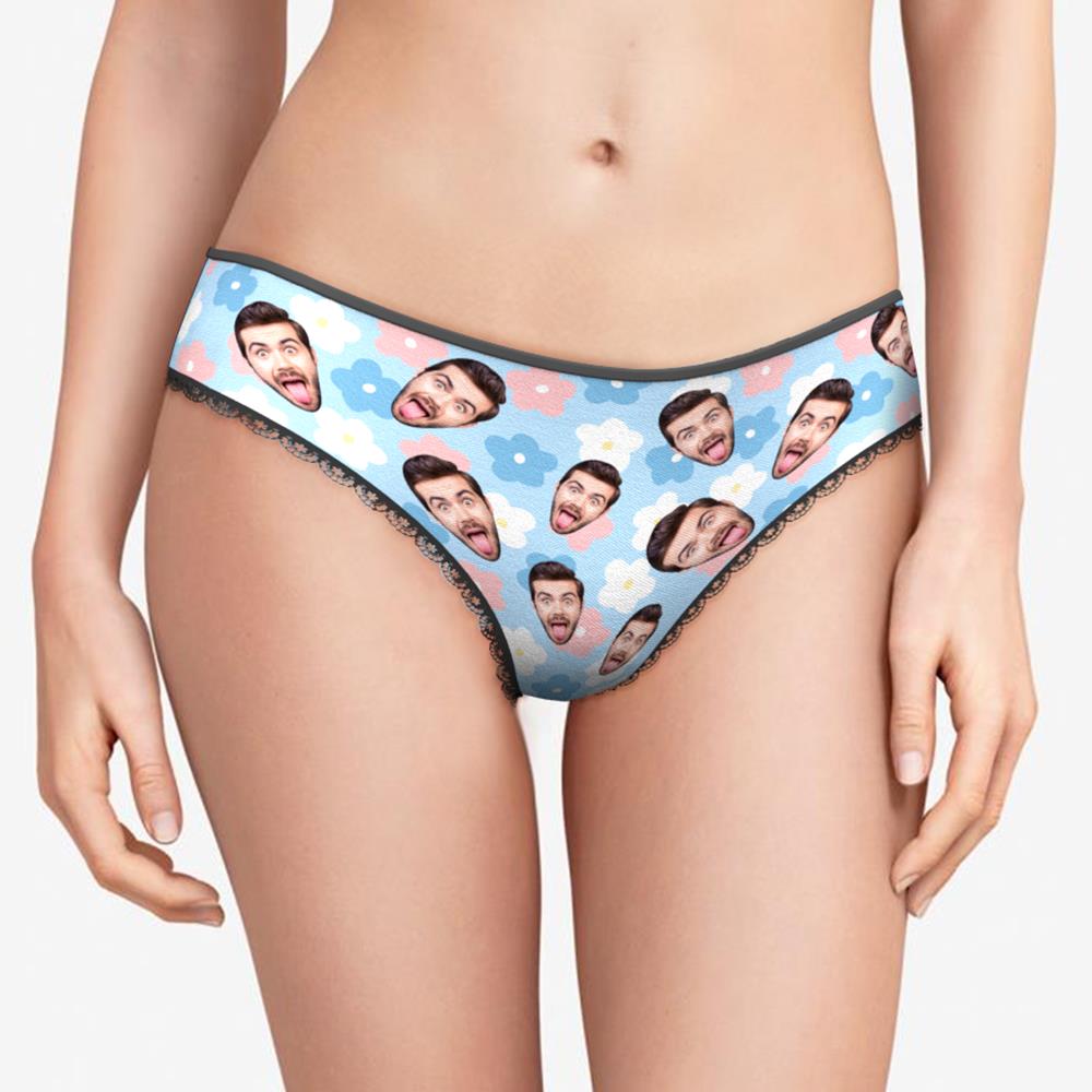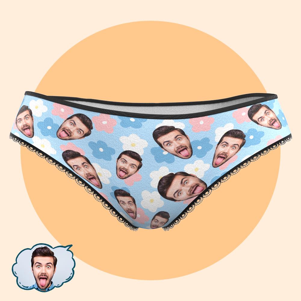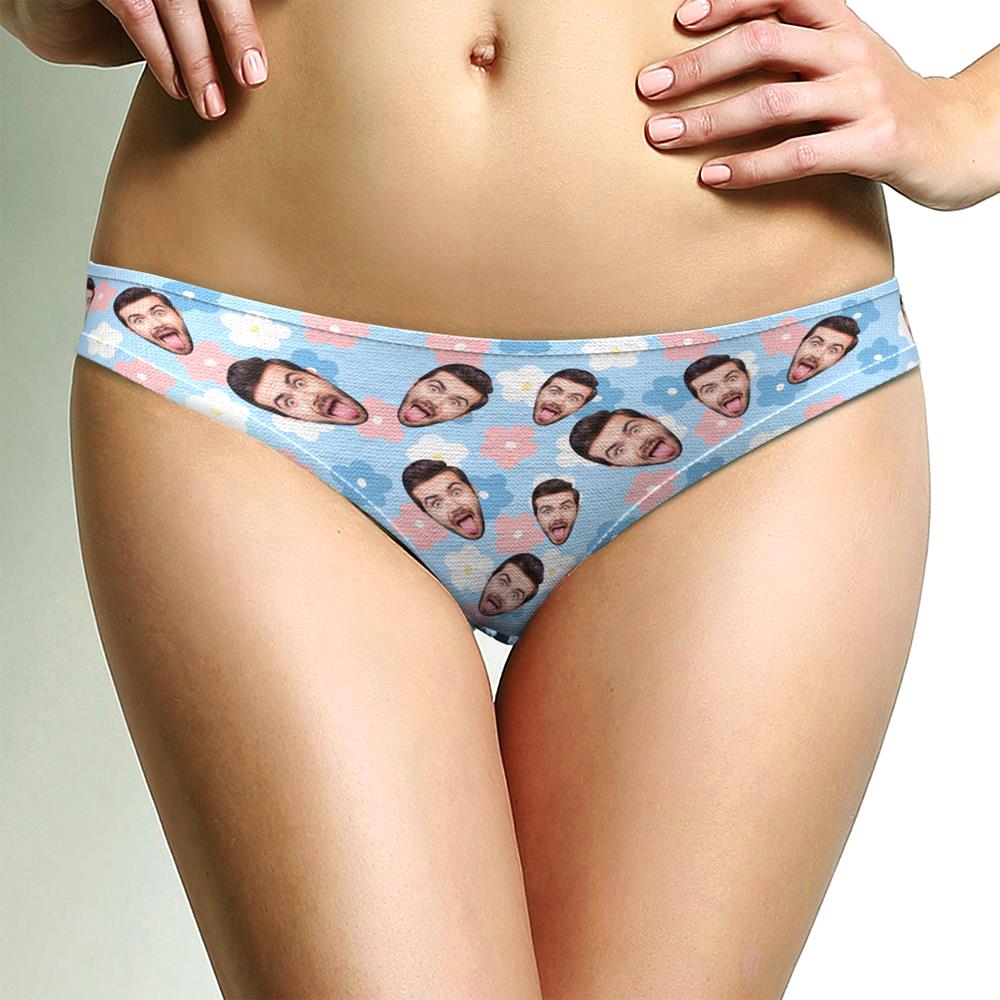 Women's Thong Panties Custom Face Men's Face Blue Flower