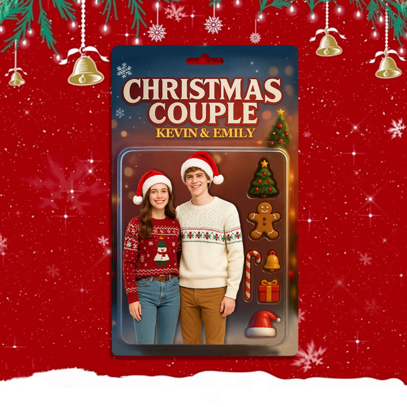 Custom Cartoon Christmas Couple Action Figure Keychain, A Heartwarming Holiday Keepsake, Best Christmas Gift for Him