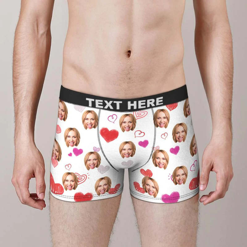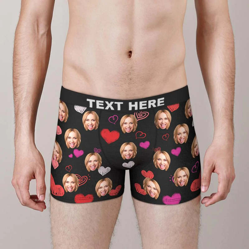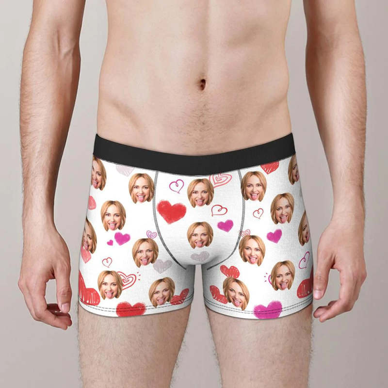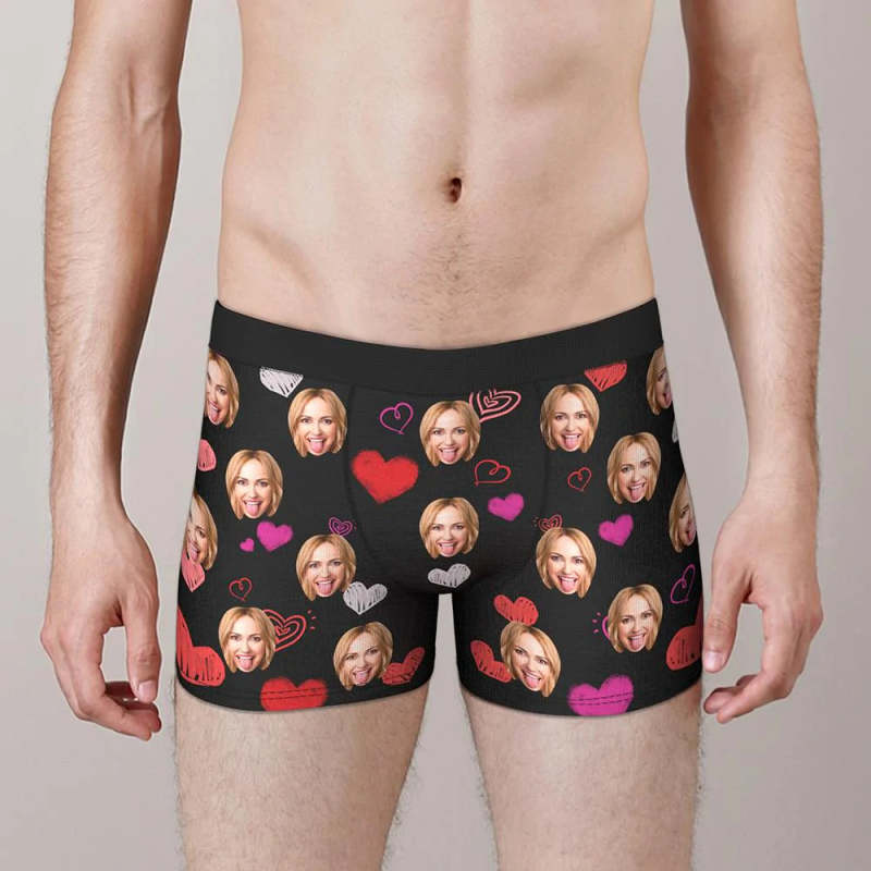 3D Preview Custom Colorful Hearts Face Boxer Briefs Gift for Him