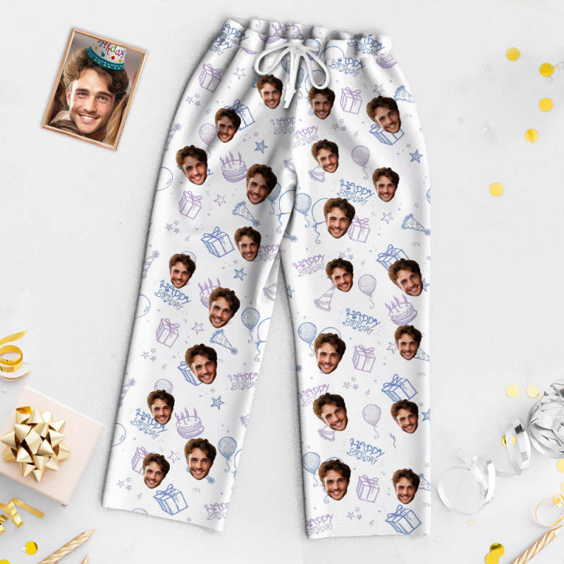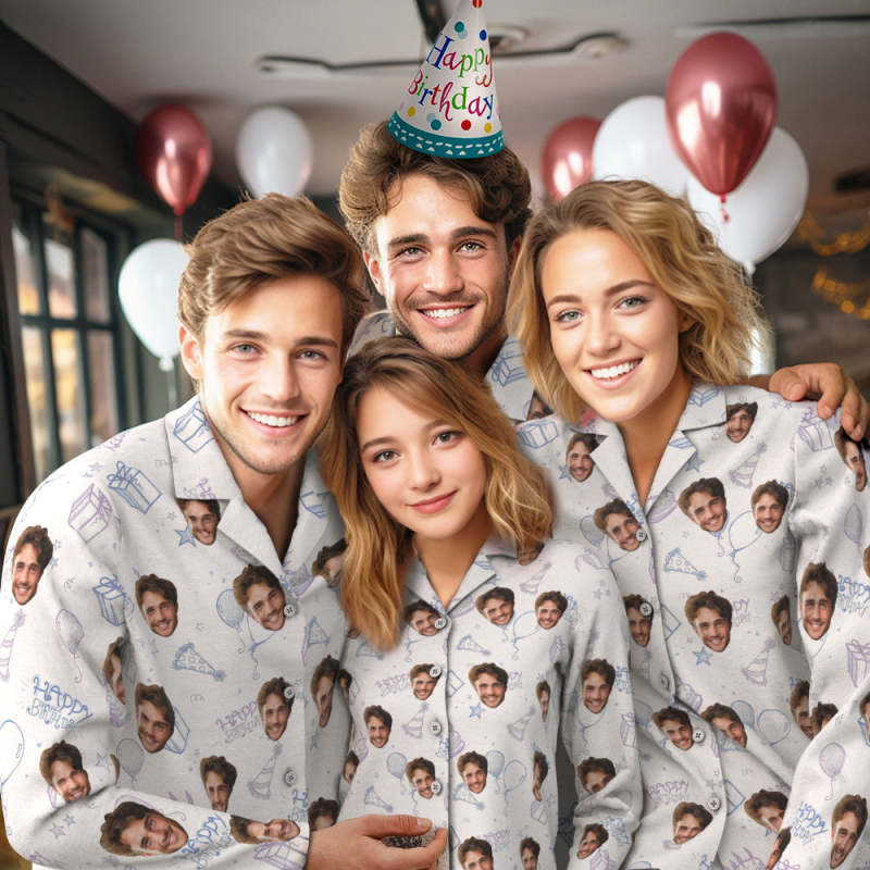 Custom Face Birthday Pajamas Personalized Photo Party Sleepwear Women Men White Pajama Set Happy Birthday