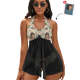 Custom Face Boyfriend Women's Strappy Neck Dress Swimsuit - Flower