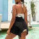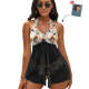 Custom Face Boyfriend Women's Strappy Neck Dress Swimsuit - Flower and Leaf