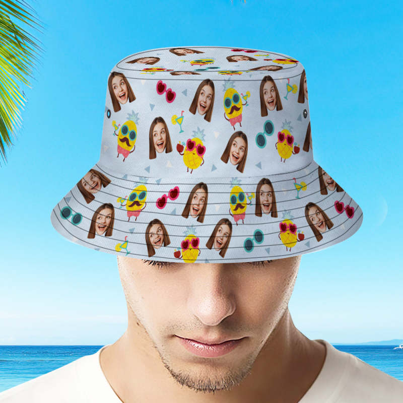 Custom Face Bucket Hat Unisex Personalized Photo Summer Cap Hiking Beach Hats - Funny Pineapple