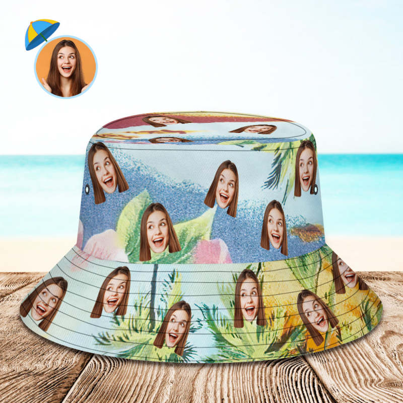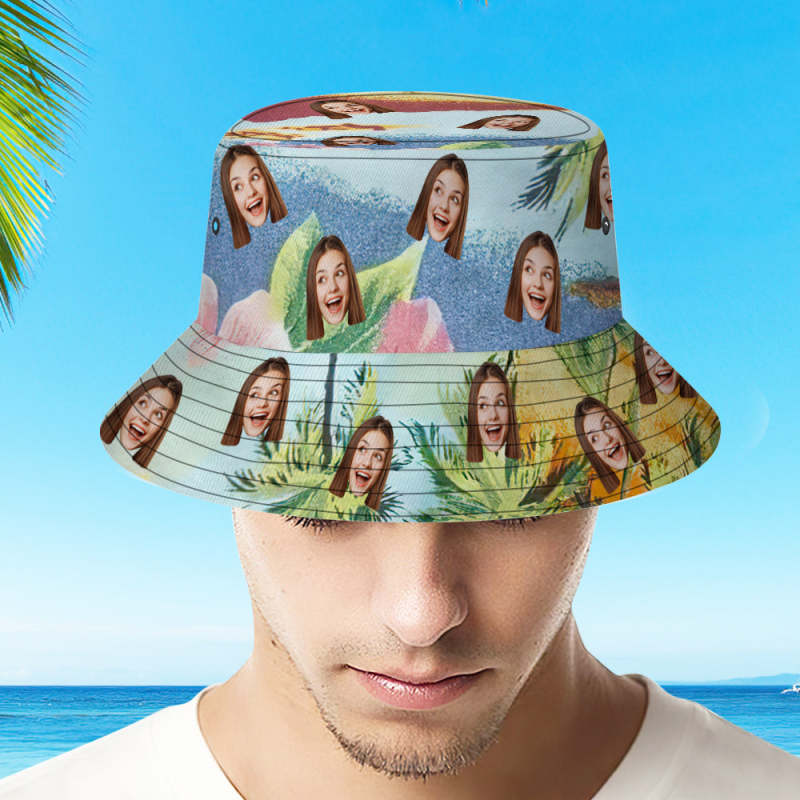 Custom Face Bucket Hat Unisex Personalized Photo Summer Cap Hiking Beach Hats - Tropical Flowers