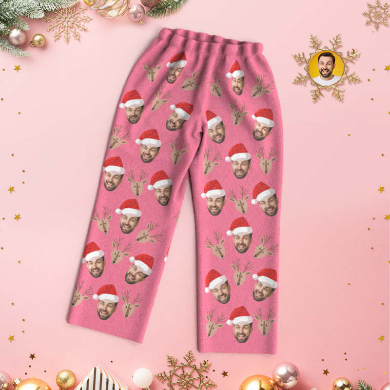 Custom Face Deer Pajamas Personalized Pink Pajamas Women Men Set Christmas Gift
