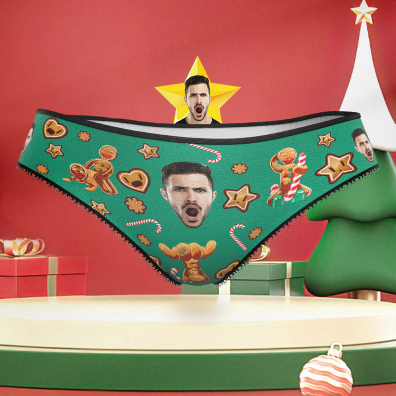 Custom Face Gingerbread Couple Christmas Underwear Funny Christmas Panties for Her