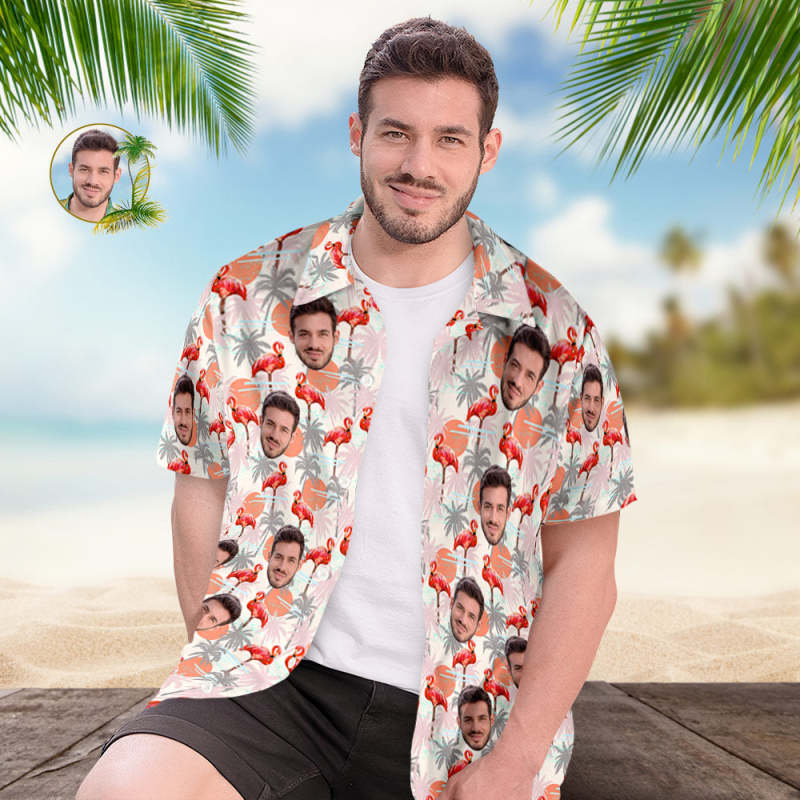 Custom Face Hawaiian Shirt For Him Personalized Men's Photo Shirt Flamingo Floral Valentine's Day Gift