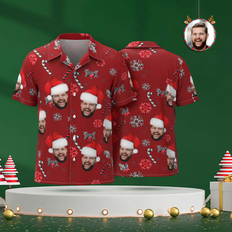 Custom Face Hawaiian Shirt Personalised Photo Christmas Shirts With Candy Canes For Men Custom Face Hawaiian Shirt Personalised Photo Christmas Shirts With Candy Canes For Men Custom Face Hawaiian Shirt Personalised Photo Christmas Shirts With Candy Canes For Men