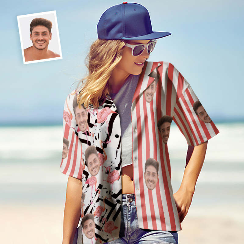 Custom Face Hawaiian Shirts Personalized Flamingo Shirts Casual Short Sleeve Valentine's Day Gift for Couple