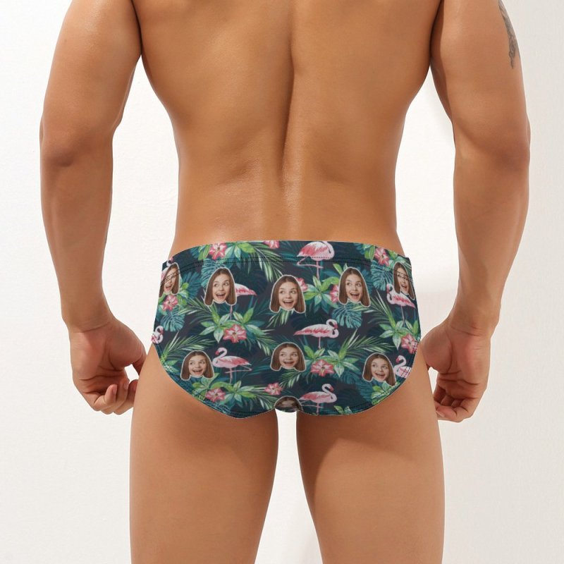 Custom Face Hawaiian Style Men's Swimming Trunks Personalized Flamingo Triangle Swim Briefs