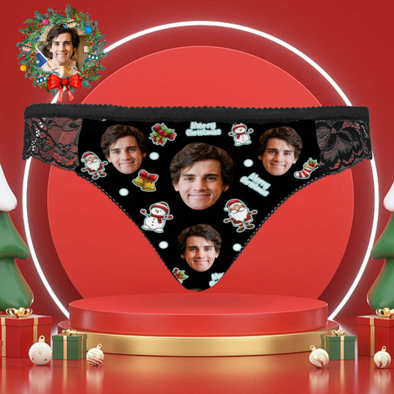Custom Face Lace Panties Personalized Sexy Women Underwear Merry Christmas