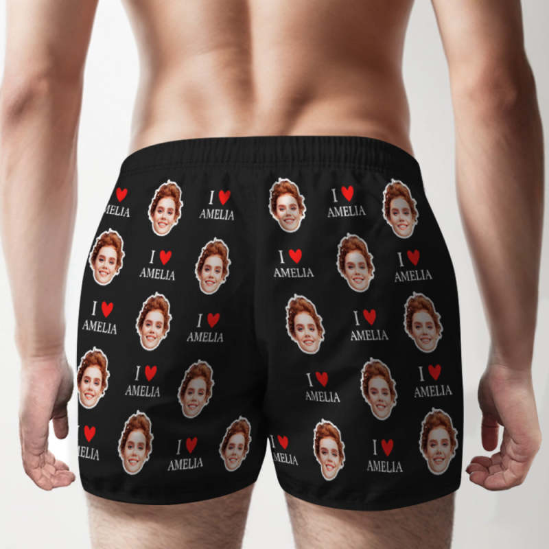 Custom Face Multicolor Boxer Shorts I Love You Personalized Photo Underwear Gift for Him