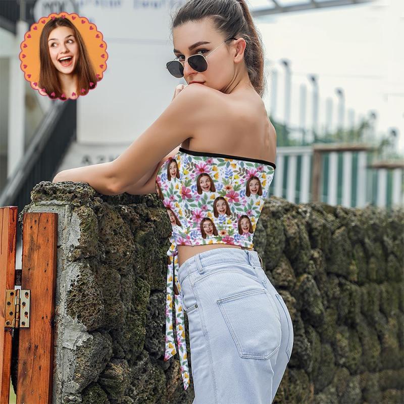 Custom Face on Women's Strapless Bow Tube Top Personalized Breast Wrap Bikini Tops Faces Mash Tank Top with Photo Family Photo Go to Beach Perfect Gift for Wife - Colorful Flowers