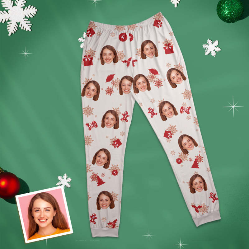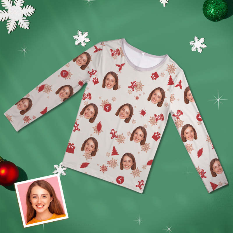 Custom Face Pajamas Personalized Round Neck Long Pajamas Christmas Gift For Women
