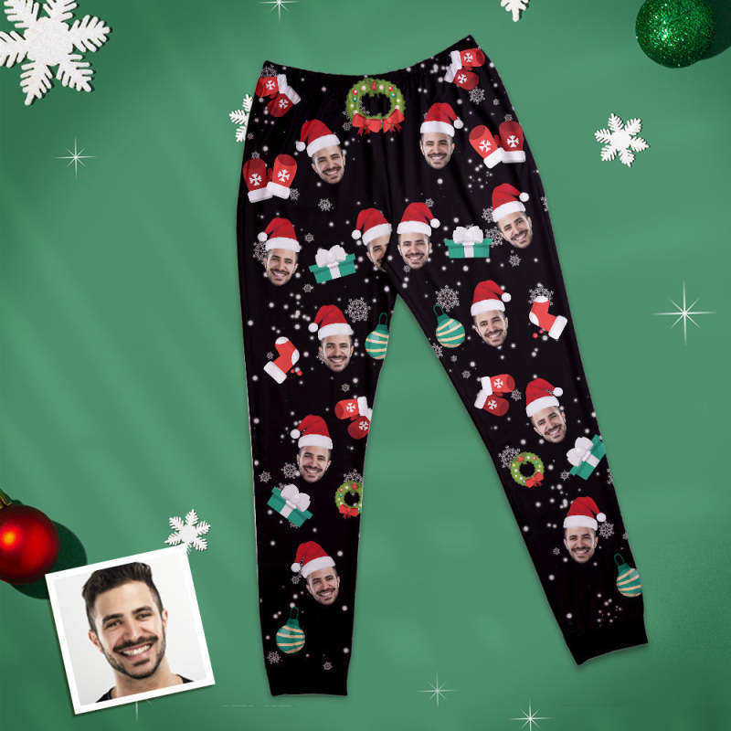Custom Face Pajamas Personalized Round Neck Long Pajamas For Women - Christmas Snowflake
