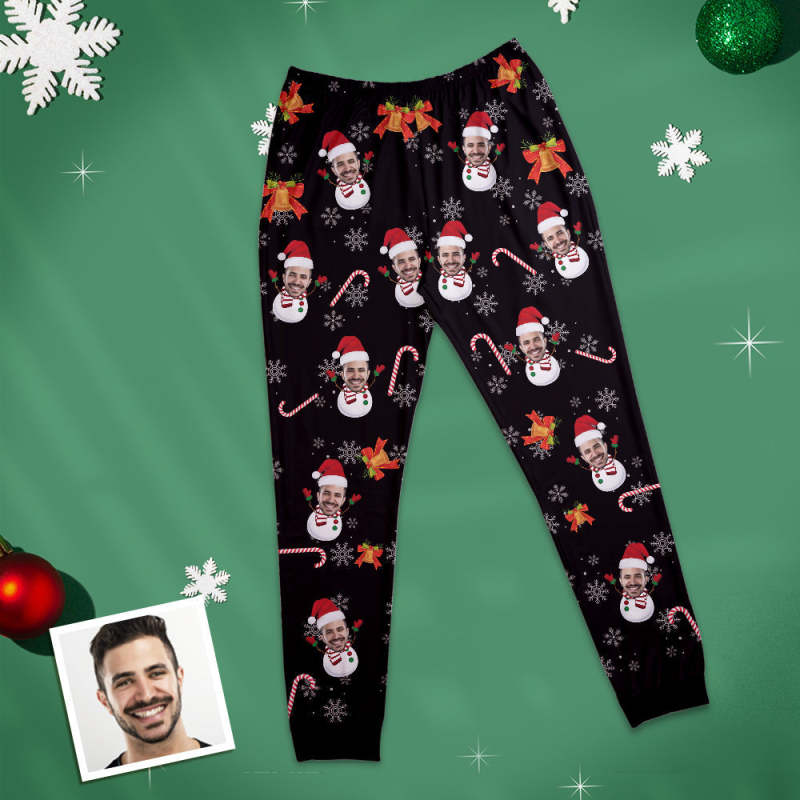 Custom Face Pajamas Personalized Round Neck Long Pajamas Snowman Christmas Gift For Women