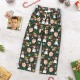 Custom Face Pants Ladie's Green Loose Wide-leg Pajama Pants Snowman Merry Christmas