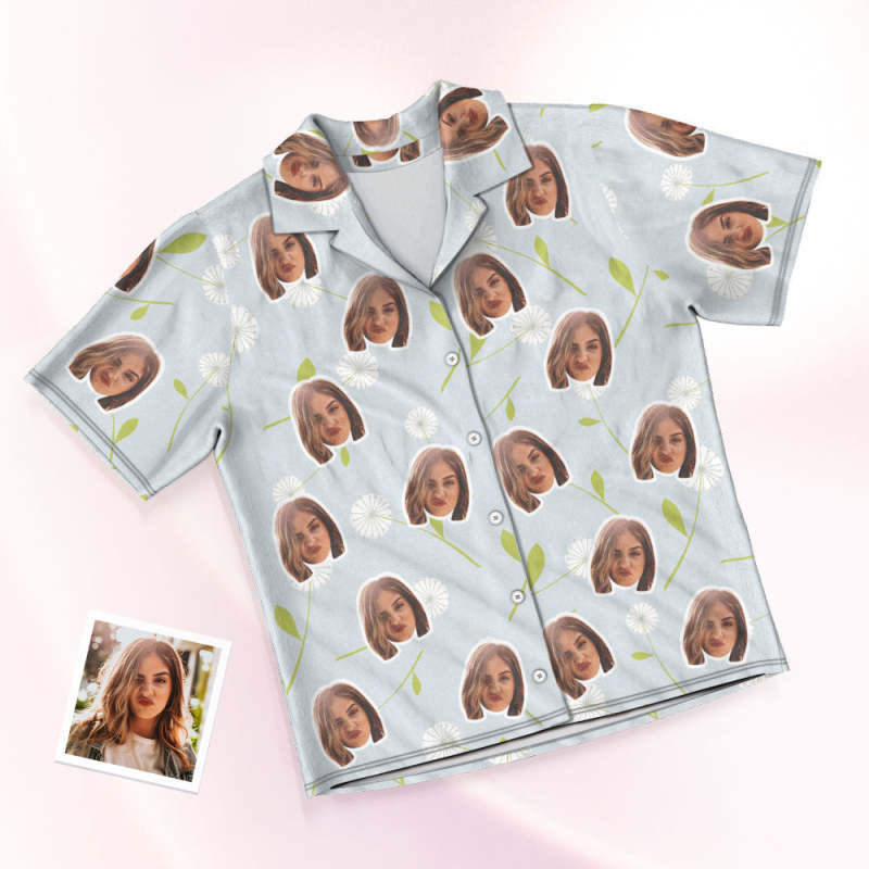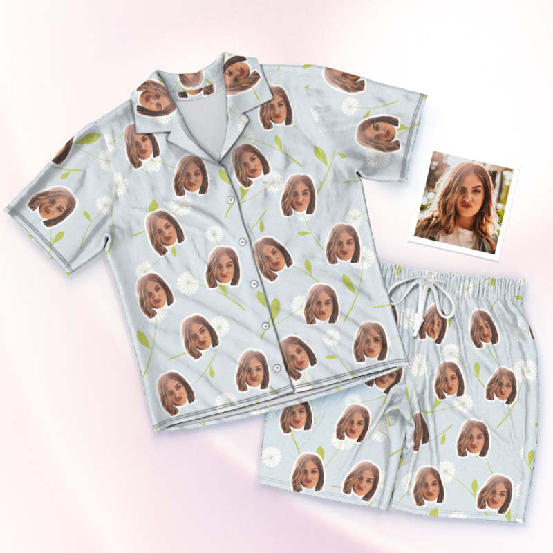Custom Face Short Sleeved Pajamas Personalised Photo Pajama Women Men Summer Pajamas Summer Gifts - Dandelion