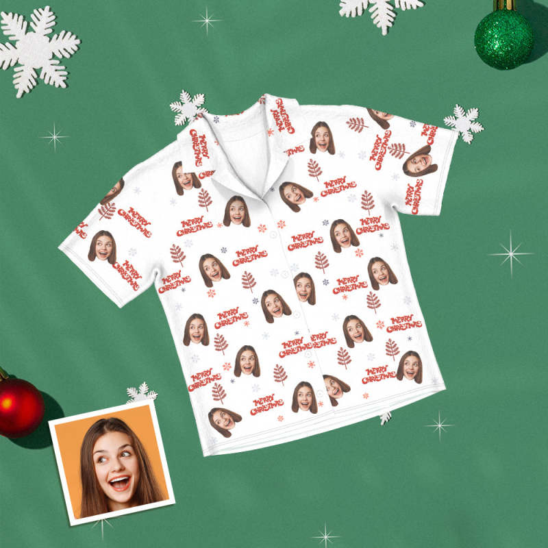 Custom Face Short Sleeved Pajamas Personalised Photo Women Men Sleepwear Gifts For Lover Merry Christmas