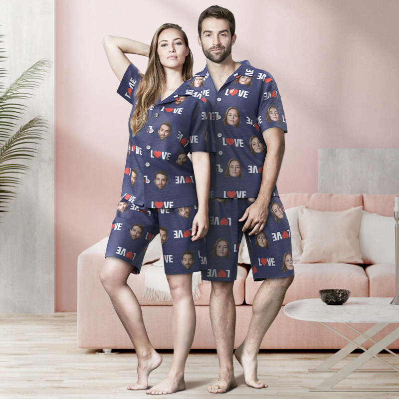 Custom Face Short Sleeved Pajamas Personalized Photo Sleepwear Women Men Summer Pajamas Valentine's Day Gift - Love