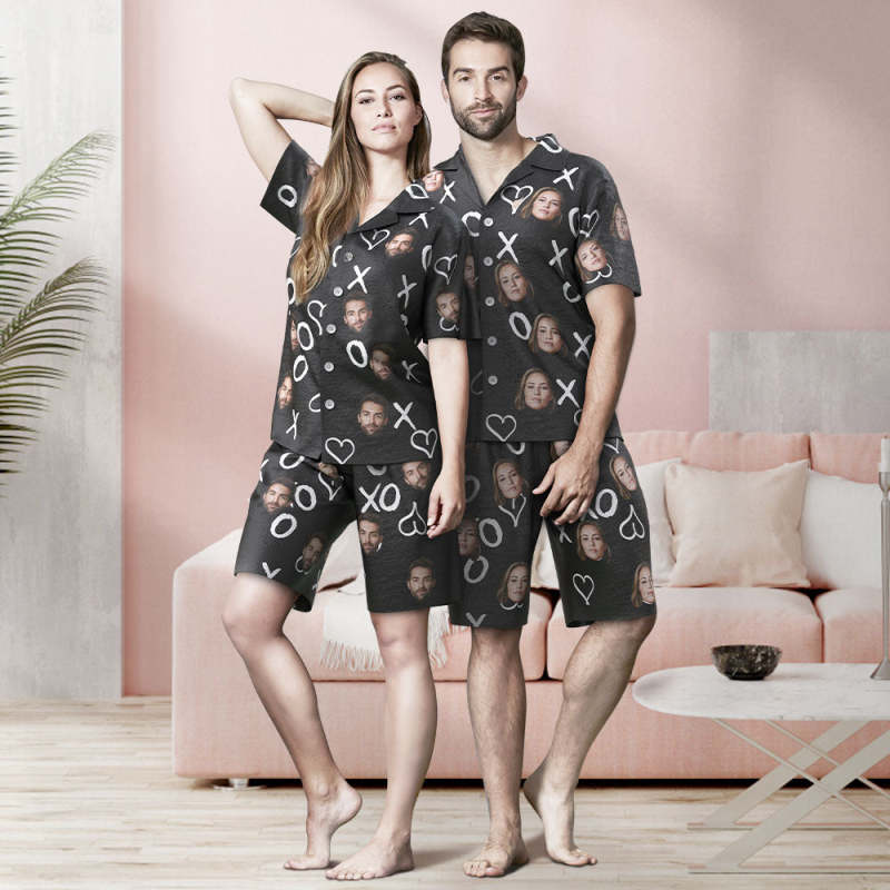 Custom Face Short Sleeved Pajamas Personalized Photo Sleepwear Women Men Summer Pajamas Valentine's Day Gift - XO