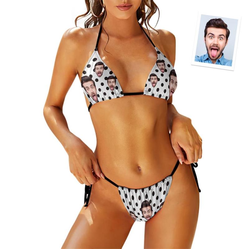 Custom Face Swimming Suit Sexy Strappy Bikini Polka