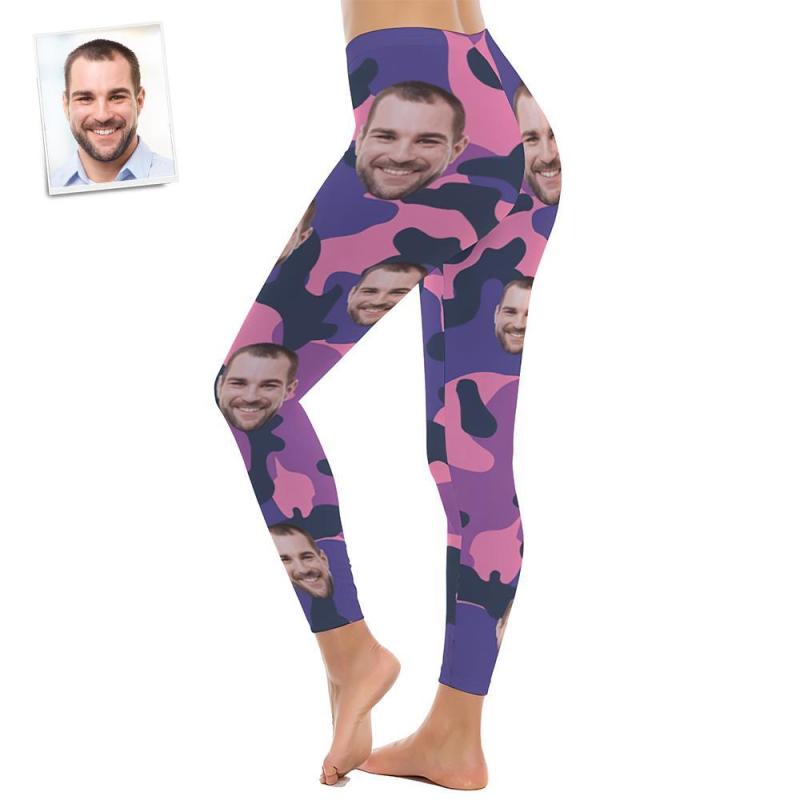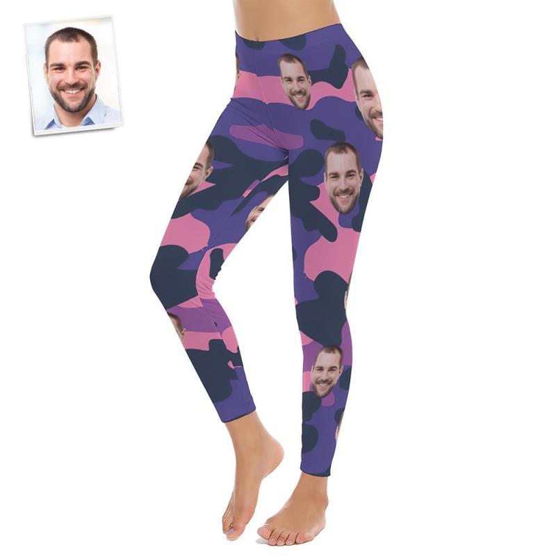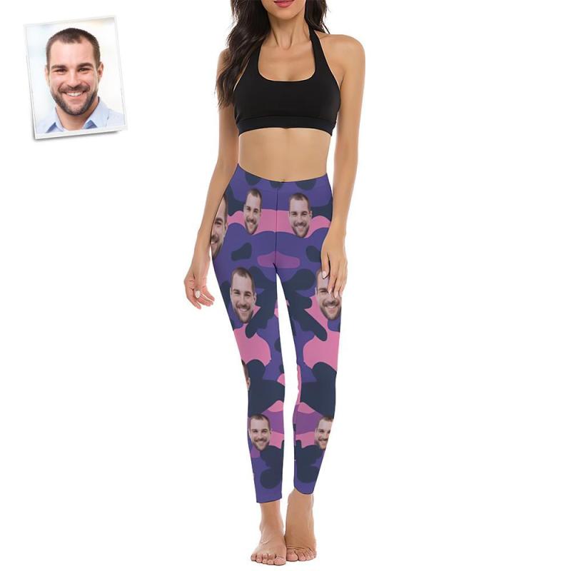 Custom Face Women's Yoga pants Personalied Photo Yoga Leggings - Purple Camouflage