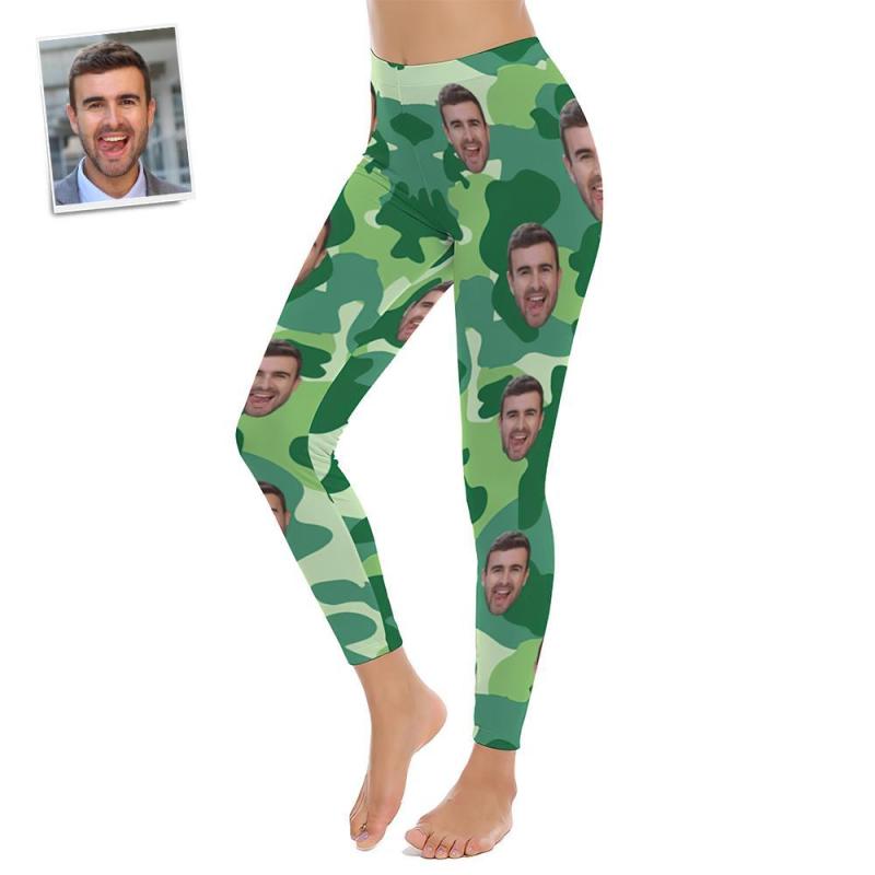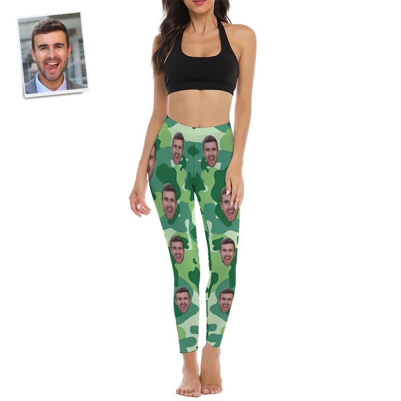 Custom Face Women's Yoga pants Personalied Photo Yoga Leggings - Sea Green Camouflage