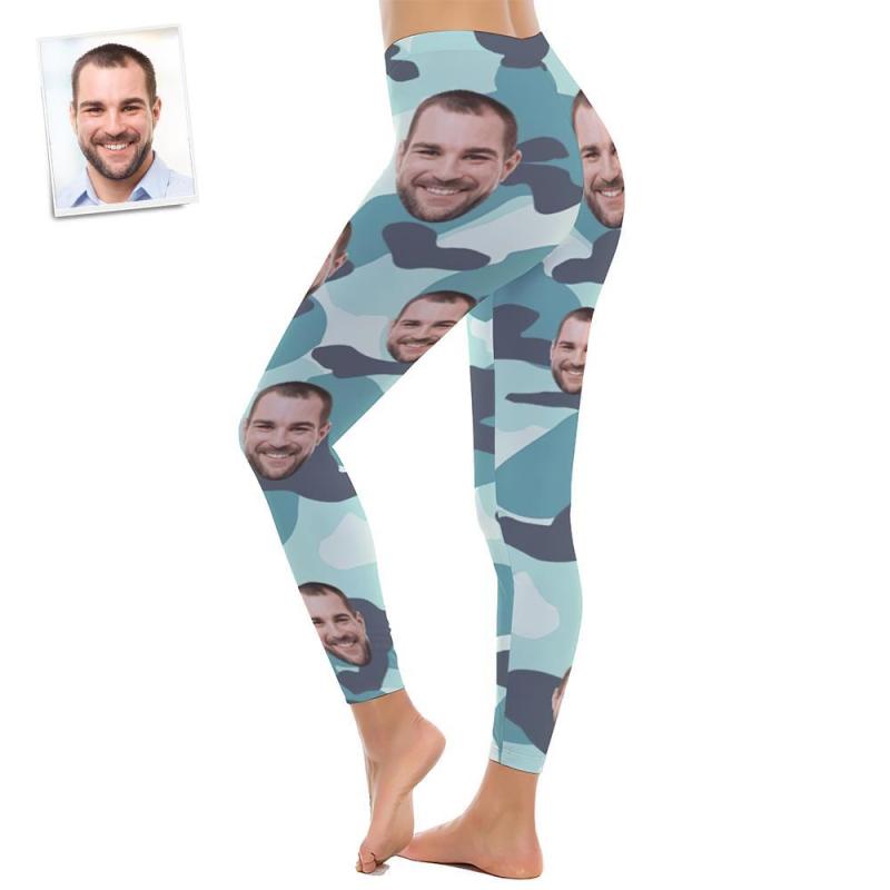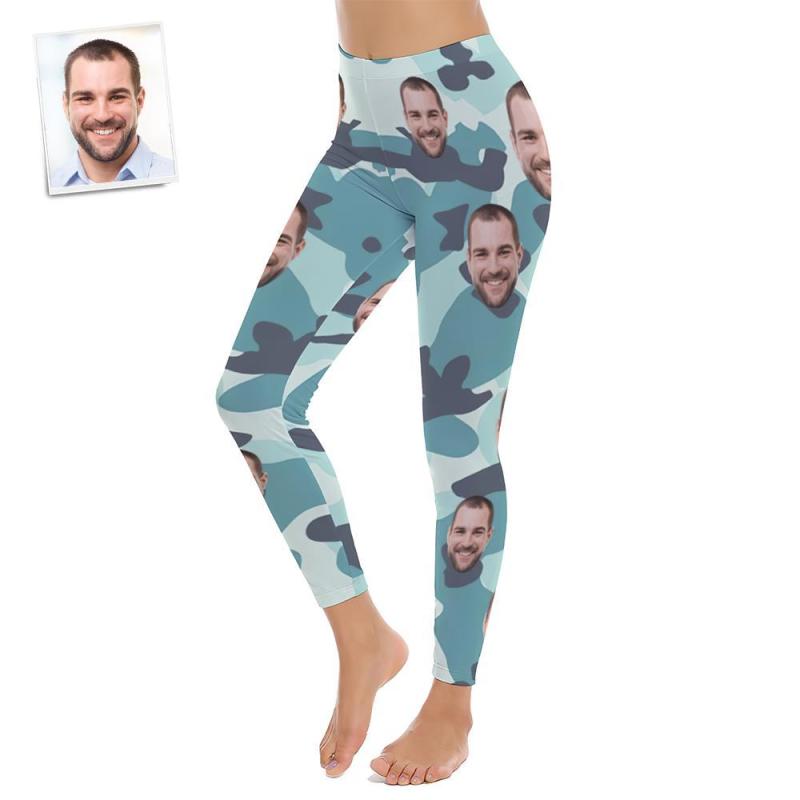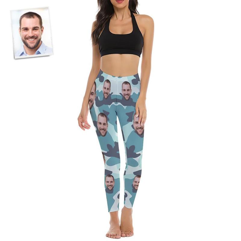 Custom Face Women's Yoga pants Personalied Photo Yoga Leggings - Turquoise Camouflage