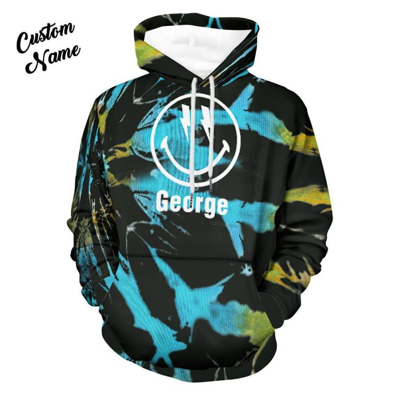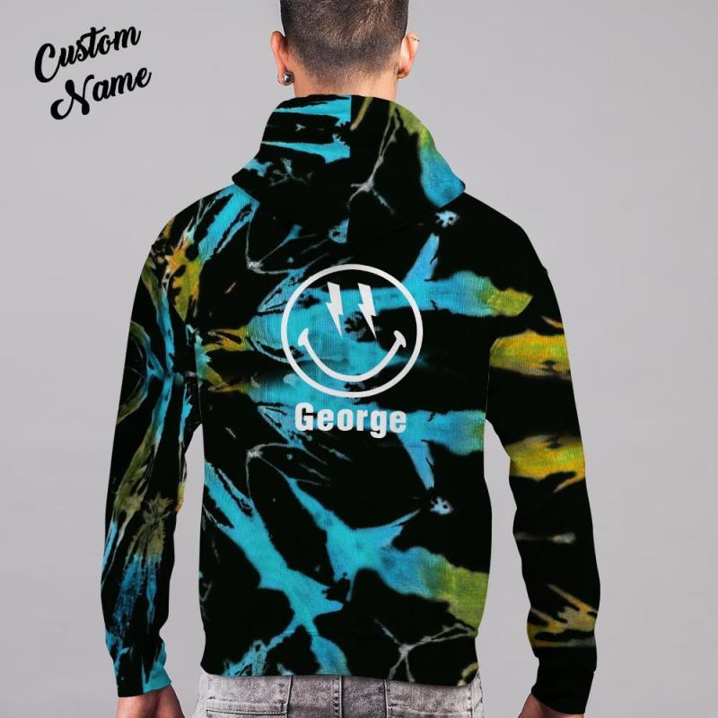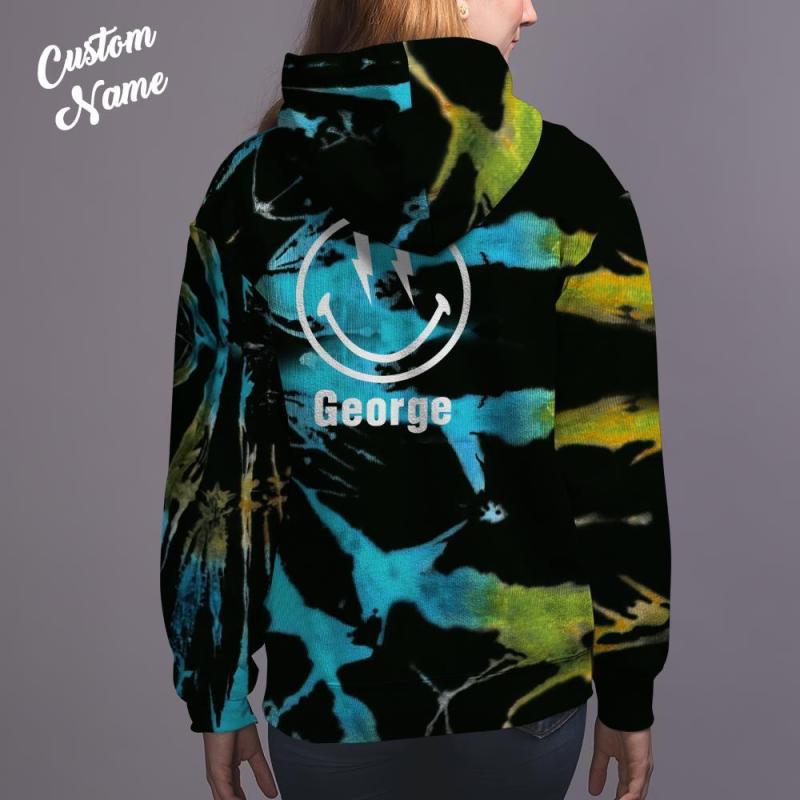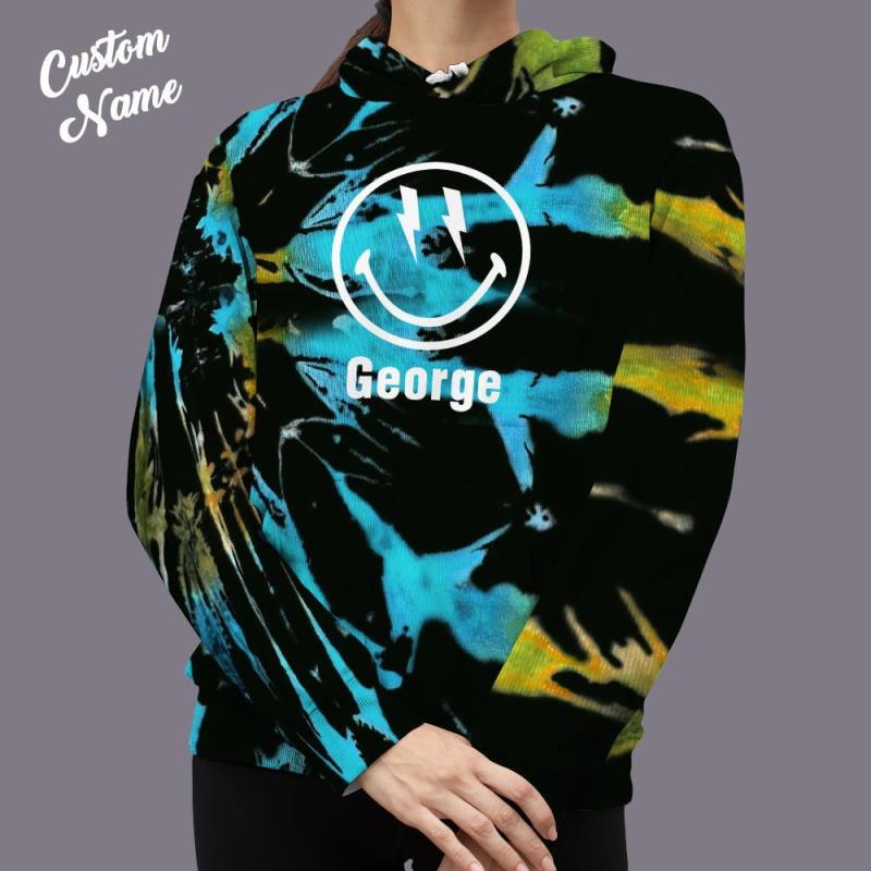 Custom Hoodie Custom Text Tie Dye Hoodie Sweatshirt Unisex with a Smiley Face