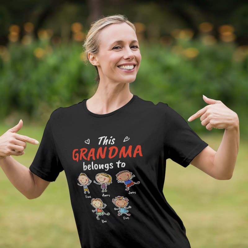 Custom Name Cartoon T-Shirt Black Personalized Shirt For Grandmother Mother's Day Gift