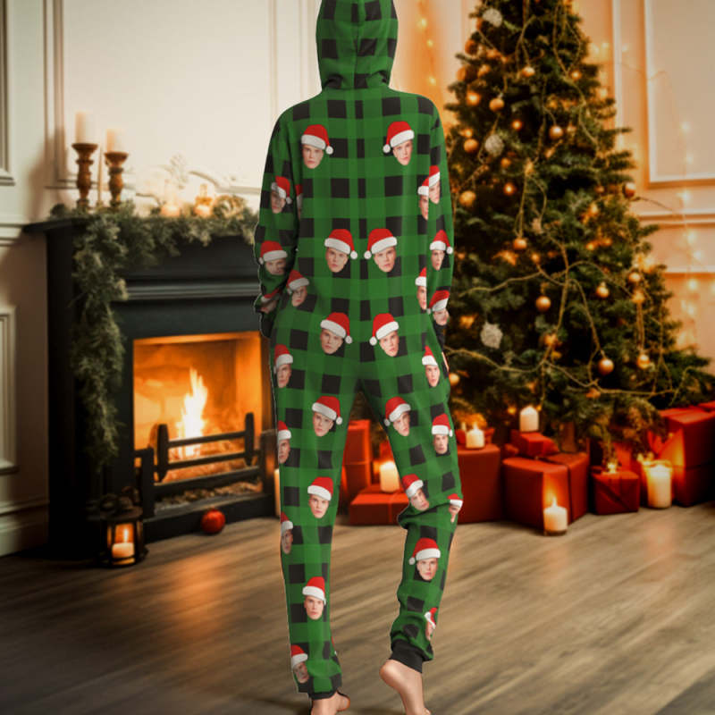 Custom Onesies Photo Pajamas One-Piece Sleepwear Red and Black Plaid Jumpsuit Homewear Christmas Gift