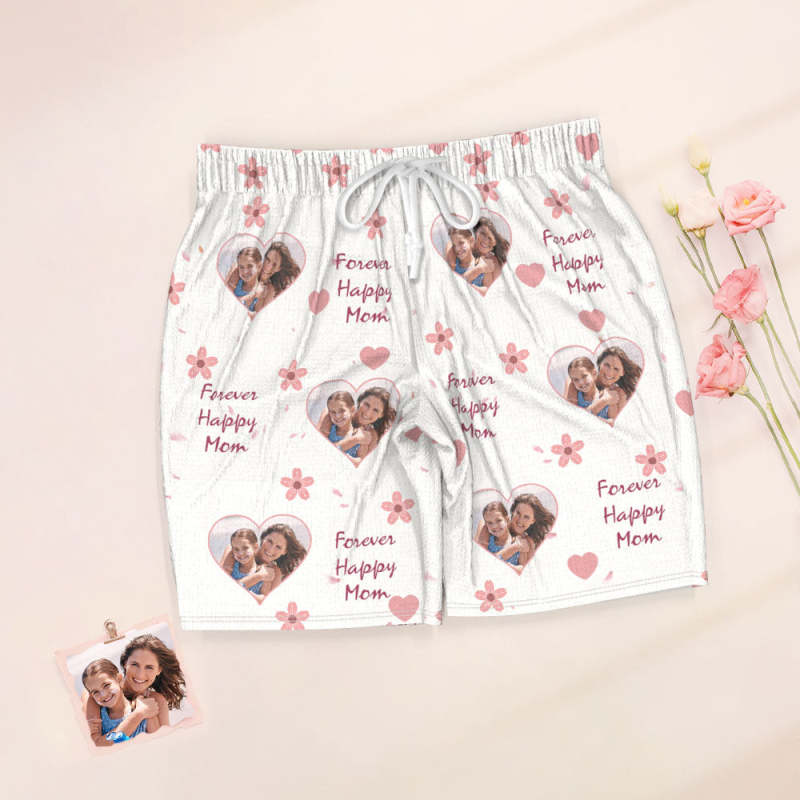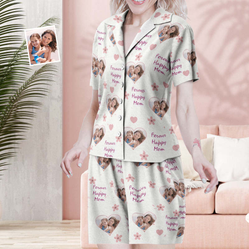 Custom Photo Short Sleeved Pajamas Personalized Sleepwear Women Summer Pajamas Forever Happy Mom