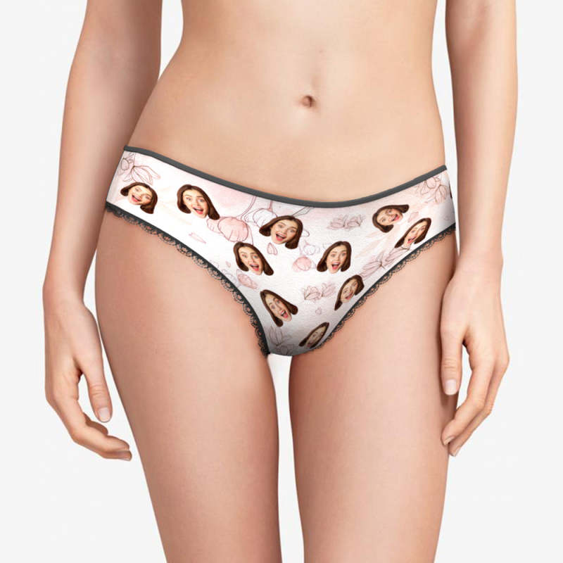Personalized Face Flowers Panties Custom Womens Photo Underwear Gift For Her