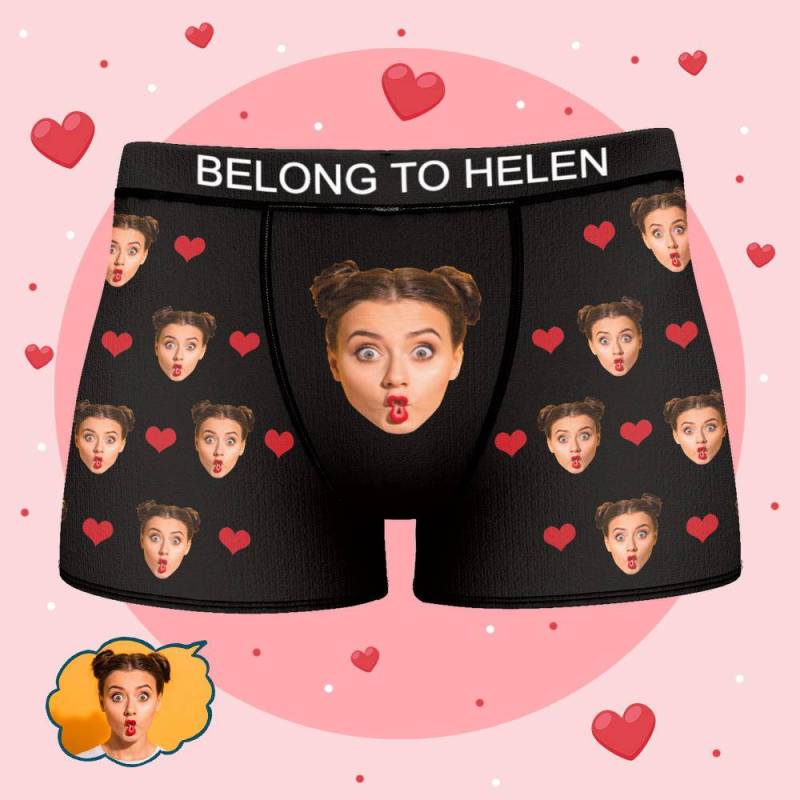 Helen - Personalized Property of Name Boxer Custom Name Face Boxer with Text Inscribed Waist Anniversary Gifts for Boyfriend