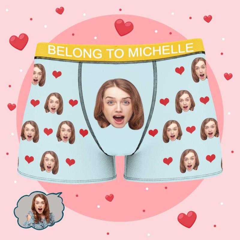 Michelle - Personalized Property of Name Boxer Custom Name Face Boxer with Text Inscribed Waist Anniversary Gifts for Boyfriend