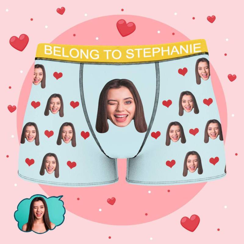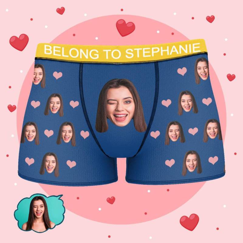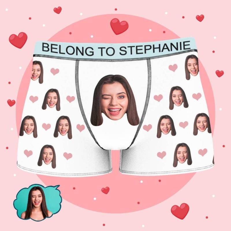 Stephanie - Personalized Property of Name Boxer Custom Name Face Boxer with Text Inscribed Waist Anniversary Gifts for Boyfriend