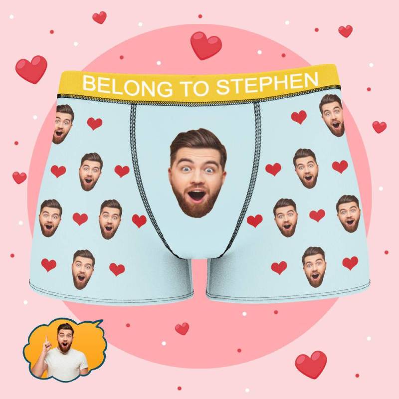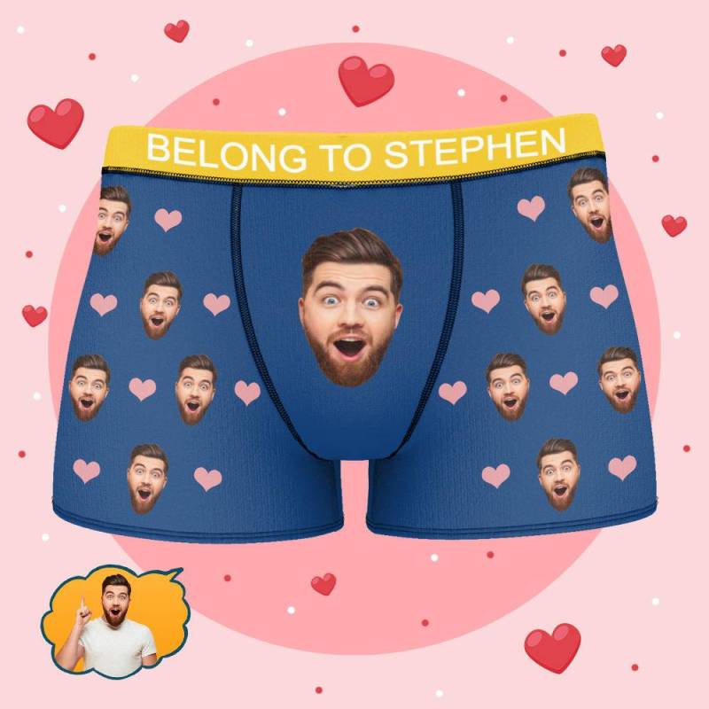 Stephen - Personalized Property of Name Boxer Custom Name Face Boxer with Text Inscribed Waist Anniversary Gifts for Boyfriend