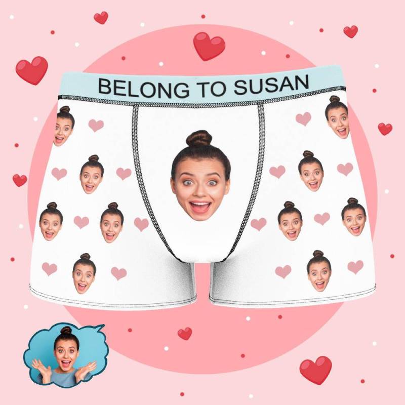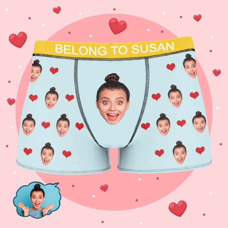 Susan - Personalized Property of Name Boxer Custom Name Face Boxer with Text Inscribed Waist Anniversary Gifts for Boyfriend