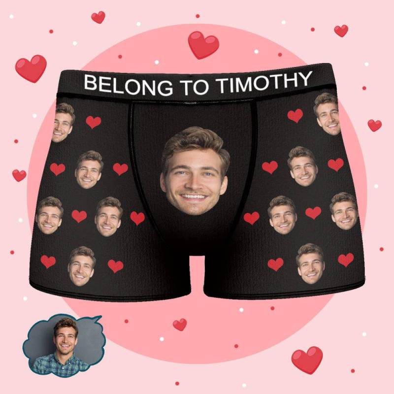 Timothy - Personalized Property of Name Boxer Custom Name Face Boxer with Text Inscribed Waist Anniversary Gifts for Boyfriend