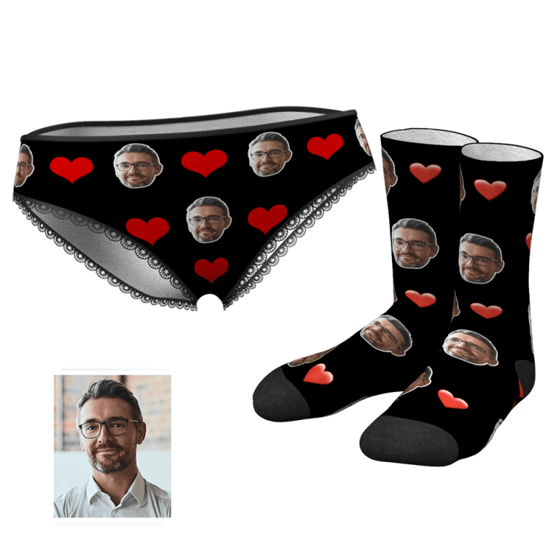 Women's Custom Face Panties and Photo Socks Set | Red Heart